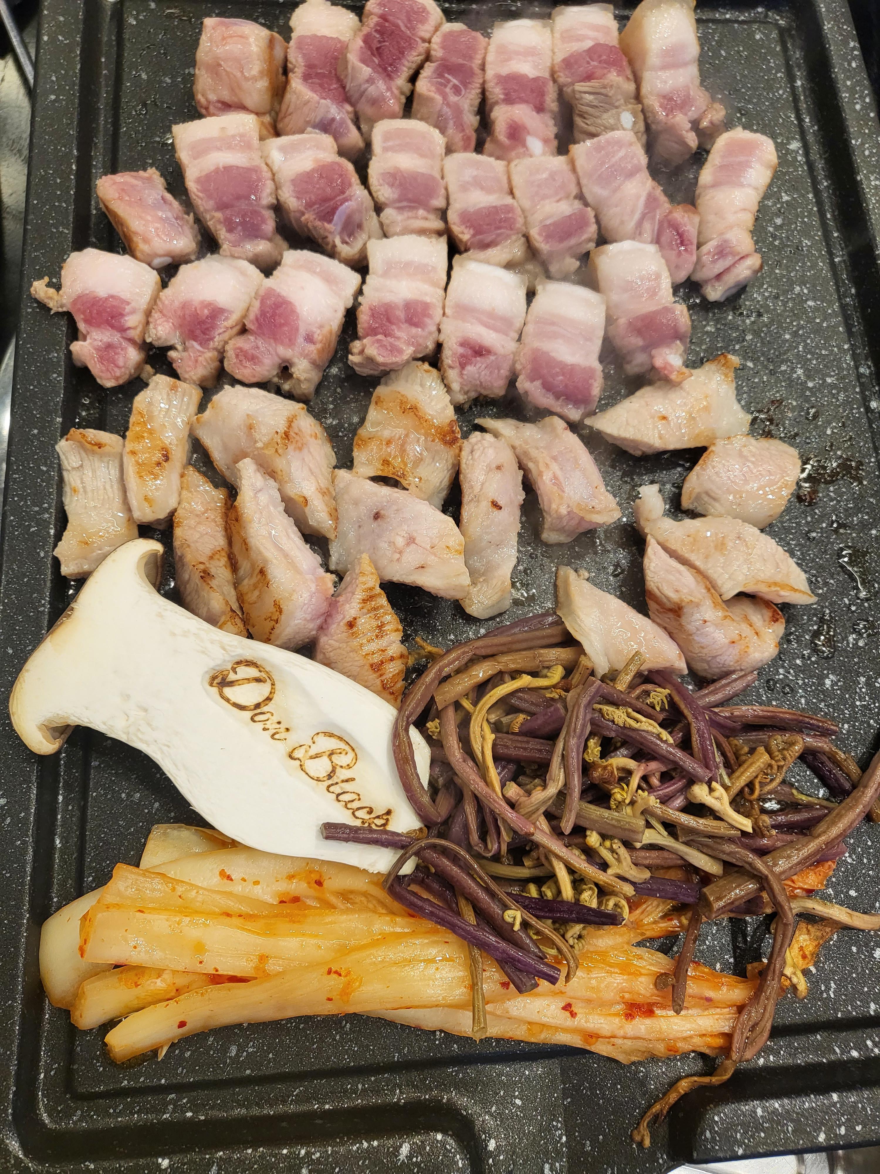 1. 서귀포 - 돈블랙 서귀포 쪽에 있는 돈블랙입니다. 고기집 중에서 아기 의자가 없는 곳도 종종 있어서 전화해서 아기 의자 있는지 확인 후 방문했습니다. 여기는 지인이 추천해준 동네 맛집입니다. 숙성 흑돼지 오겹살 (180g) 18,000 숙성 흑도톰살[항정살] (160g) 16,000 숙성 등심꽃살[가브리살] (180g) 16,000 숙성 뼈삼겹살 > 하루 30인분 한정 흑돼지 볶음밥 4,000 숙성 뼈삼겹살은 방문당일 한정 개수가 이미 차있어서 시켜먹질 못했습니다. 오겹살이랑 가브리살 시켜먹었습니다. 먹고나서 볶음밥도 볶아 먹었습니다. 김치가 섞인 볶음밥이 아니고 가게 특제 돼지고기 소스로 만든 양념으로 만든 볶음밥이었습니다. 개인적으로 제 취향이었어요. 볶음밥은 직원이 볶아주시는게 아니고 세팅 놓..